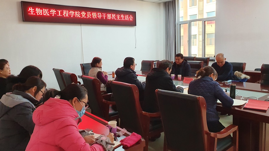 1月6日上午,生物医学工程学院在明向校区办公楼408会议室召开了生物医学工程学院党员领导干部民主生活会,联系校领导刘润祥副书记、校纪委委员杨新生、院领导班子成员、党政办主任、工会主席、教科办主任、学工办主任和团委书记,参加了会议。会议由学院党委书记韩志军主持。