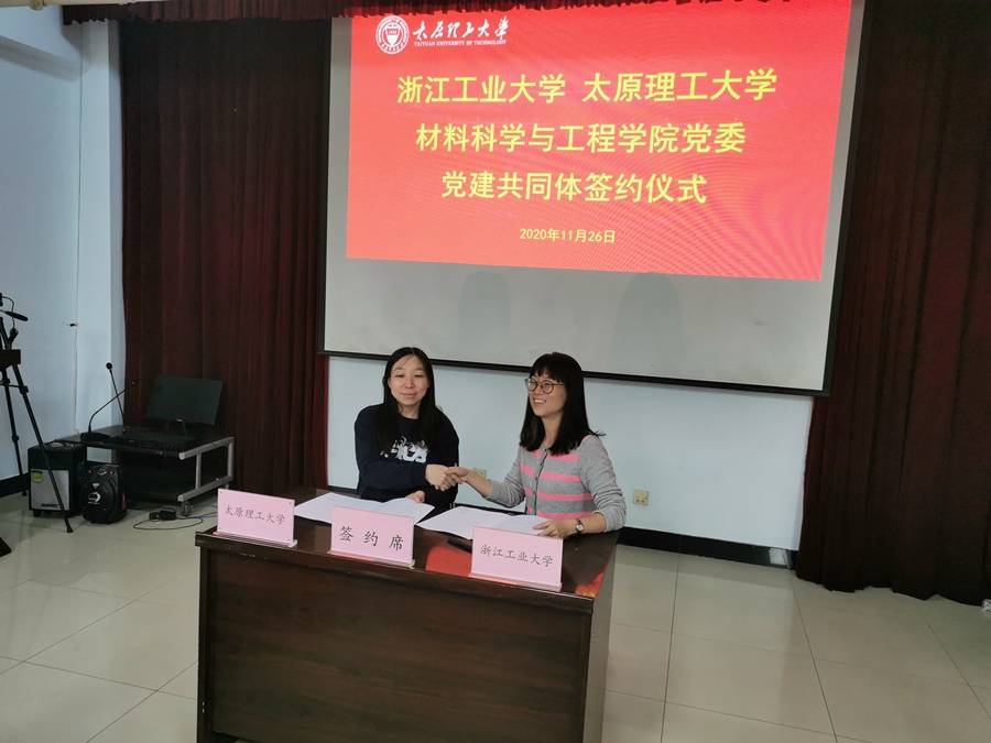 交流团一行首先参观了我院党建基地,了解了我院党建工作的开展情况,随后在学院813会议室召开了两所高校材料科学与工程学院党委党支部交流合作会。浙江工业大学材料科学与工程学院高分子研究所党支部书记陈思教授介绍了其党支部党建工作的基本做法和特色案例,我院材料学系教工党支部书记贾兰向交流团一行汇报了“双带头人”制度和其党支部党建工作开展情况。围绕党的十九届五中全会精神的学习贯彻、党建工作引领、党建与科研的关系、党建工作对学科发展的影响等,参会教师进行了深入交流。最后,双方签订了党建共同体协议,约定双方定期开展交流,进行优势互补、共谋发展,共同推动党建工作的快速发展。