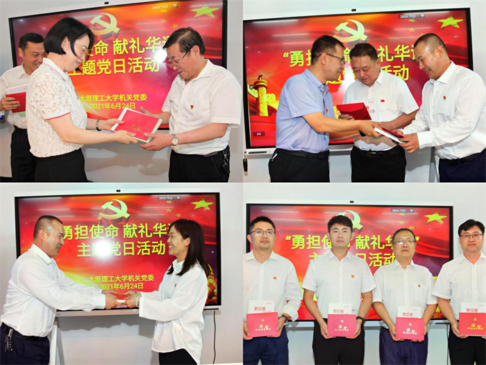 首先,举行了新党员入党宣誓、老党员重温誓词和党员代表政治生日庆祝仪式。面对鲜红的党旗,机关党委樊岚书记带领全体党员同志们一起高举右拳,庄严宣誓。百年风雨,誓言铮铮,初心不改。其次,机关党委为优秀党员代表过了一个有意义的政治生日,为每位同志赠送一份“党员政治生日贺卡”,鼓励他们始终牢记以为共产主义事业奋斗终身的崇高理想。