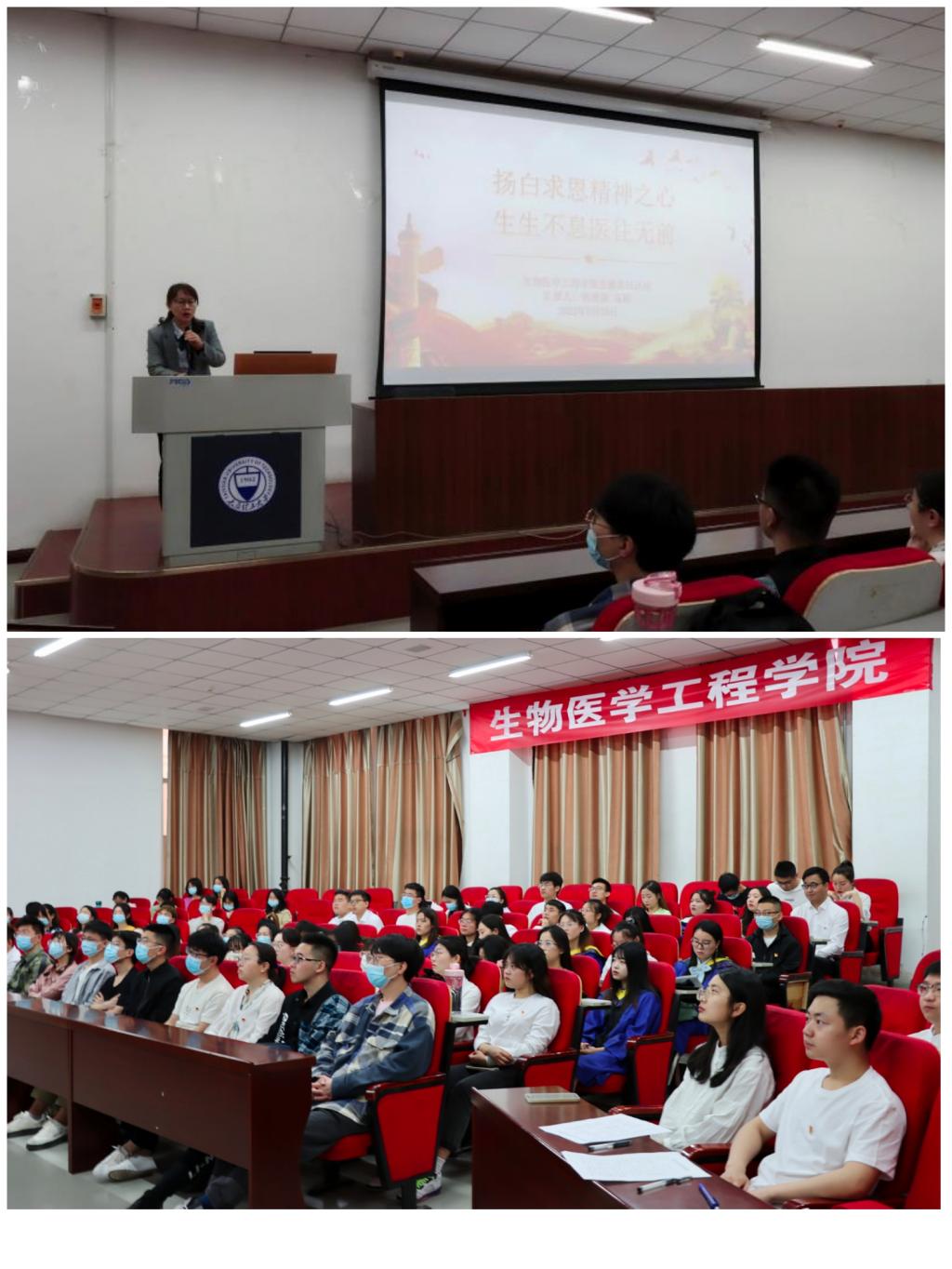 5月20日,生物医学工程学院邀请山西白求恩医院检验科主管技师、生医学院博士研究生郭继强医生和耳鼻喉头颈外科副主任医师、生医学院博士研究生高颖医生为生医学院全体党员举办了一场以“扬白求恩精神之心,生生不息医往无前”为主题的党日活动。学院党委副书记李昱霞老师主持了本次党日活动,学院本科生党支部和研究生党支部全体党员参与本次党日活动。