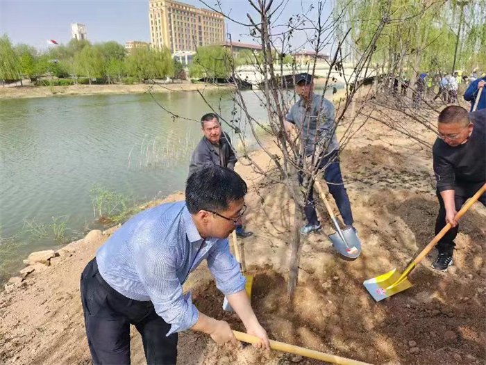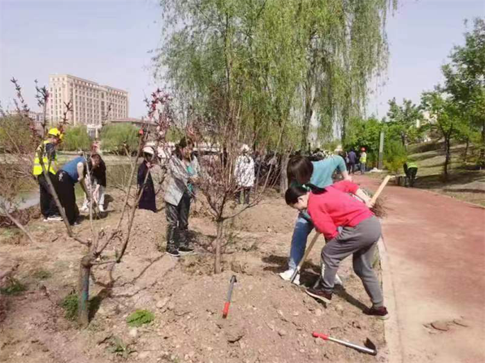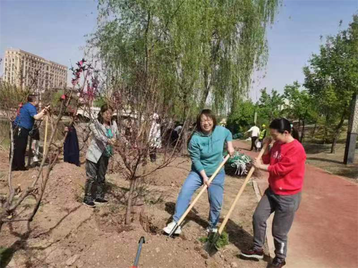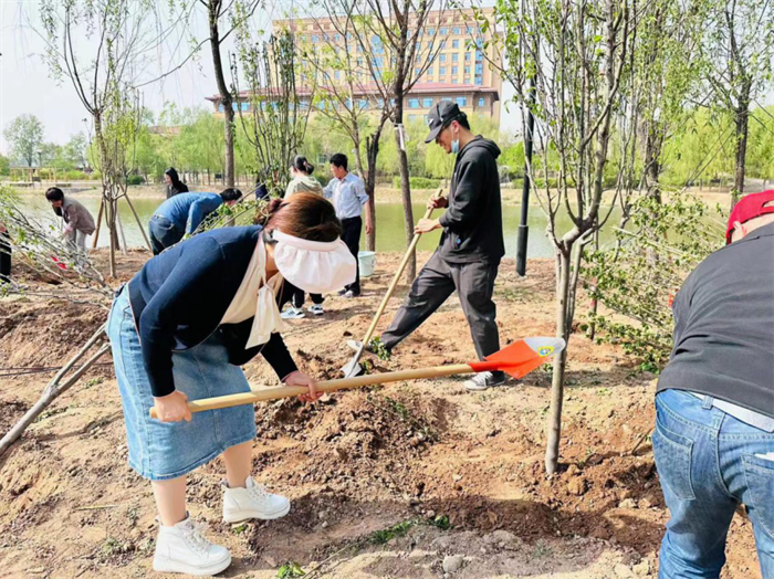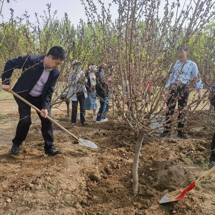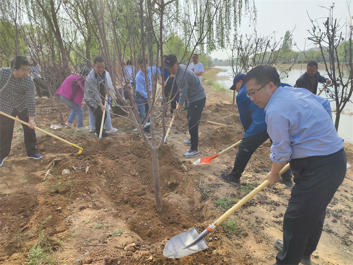 文明风吹花千树,和谐校园满眼春。在全国上下深入学习贯彻落实党的二十大精神、全党深入开展学习贯彻习近平新时代中国特色社会主义思想主题教育、全校上下凝心聚力建设综合性研究型高水平一流大学之际,机关党委、机关工会认真贯彻“学思想、强党性、重实践、建新功”的总要求,结合学校实际情况,本着服务师生办实事的目标,4月19日下午,在明向校区南门河岸边,组织党员干部职工开展“学思践悟二十大、植绿护绿树新风”校园美化义务植树活动。