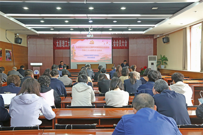4月20日上午,继续教育学院党总支、国际交流学院党总支、资产公司党委在继续教育学院三楼会议室联合举行主题教育专题报告会。会议邀请山西经济管理干部学院朱忠良教授作了题为《全面建设社会主义现代化国家的行动纲领》的报告,三个单位部分教职员工现场聆听报告。