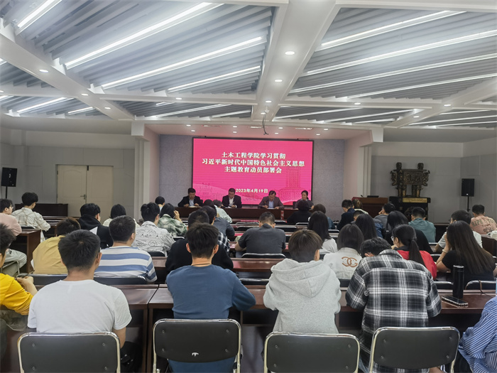 4月19日下午,土木工程学院在五层会议室召开学习贯彻习近平新时代中国特色社会主义思想主题教育动员部署会,班子成员、三办一委负责人、系(部)中心主任、党支部书记、党员代表参会。动员会由院长董晓强主持。