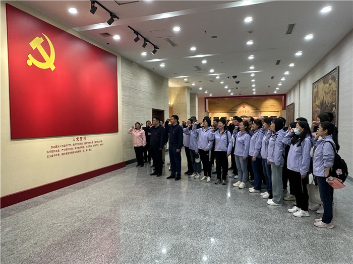 参观结束后,老师们在八路军纪念馆大厅面向党旗列队,庄严地举起右拳重温入党誓词,铿锵的誓词,坚定的承诺,让每一名老师的心灵再次受到洗礼。随后老师们以诗歌朗诵的形式缅怀革命先烈,表达了党员们对党和祖国的忠诚,感悟信仰之力、汲取奋进力量。