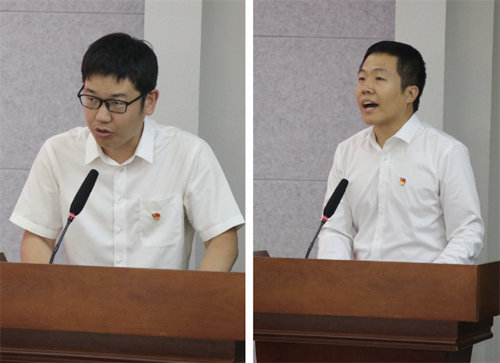 先进集体代表土木第二研究生党支部书记王永宝、校级优秀共产党员代表杨会伟先后发言。他们表示会珍惜荣誉,把取得的成绩作为新的起点、新的动力,在学校“双一流”建设和学院高质量发展中再立新功。