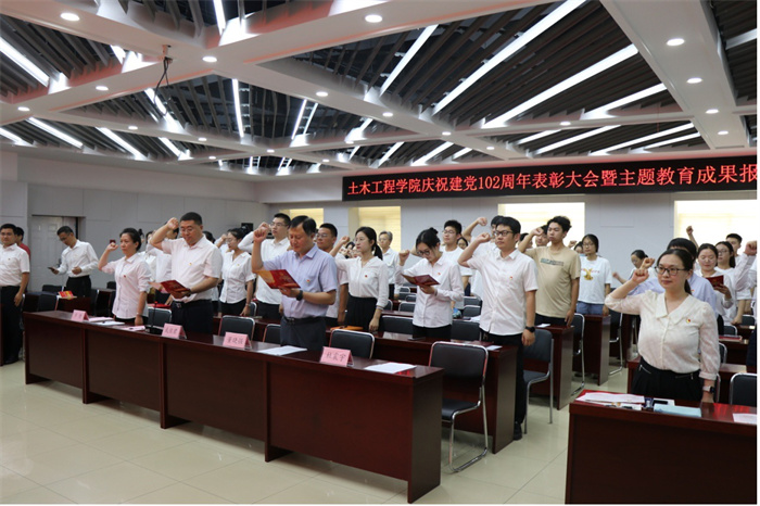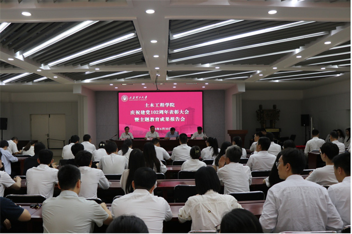 为扎实开展学习贯彻习近平新时代中国特色社会主义思想主题教育,进一步弘扬正气、树立典型,激励学院广大党员,以先进集体和优秀个人为榜样,在学院建设和发展中作出新贡献、展现新作为,6月30日上午,土木工程学院在五层会议室召开庆祝建党102周年表彰大会暨主题教育成果报告会。表彰大会由院党委副书记芦倩主持,院领导班子出席,系部中心主任、三办一委负责人、工会主席、党支部书记、受表彰人员及党员代表等百余人参加。