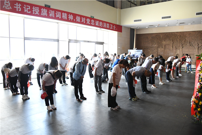 7月22日,同志们乘车来到徐向前元帅纪念馆,一进大门,白色大理石雕像巍然伫立,栩栩如生地再现了徐向前元帅的光辉形象。在纪念馆大厅内,院党委书记闫新和院长栗继祖代表经济管理学院向徐向前元帅塑像敬献花篮,同志们一起鞠躬,共同深切缅怀徐向前元帅。同志们齐唱《没有共产党就没有新中国》,歌声响彻大厅,恰似吹响经管人奋发前进的冲锋号角。大家怀着激动的心情重温了入党誓词,铿锵有力的誓词和歌声在徐向前元帅纪念馆上空久久回荡。