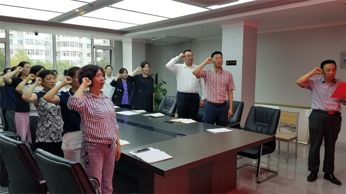 活动中,资产公司党委副书记曹世正带领全体党员重温入党誓词。