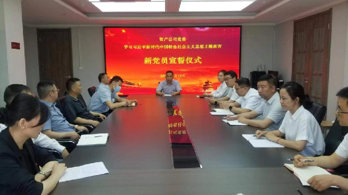 6月14日上午,资产公司党委举行“学习贯彻习近平新时代中国特色社会主义思想主题教育--新党员入党宣誓仪式”。公司党委委员、各支部书记、新入党同志及其培养人、入党积极分子等参加仪式。