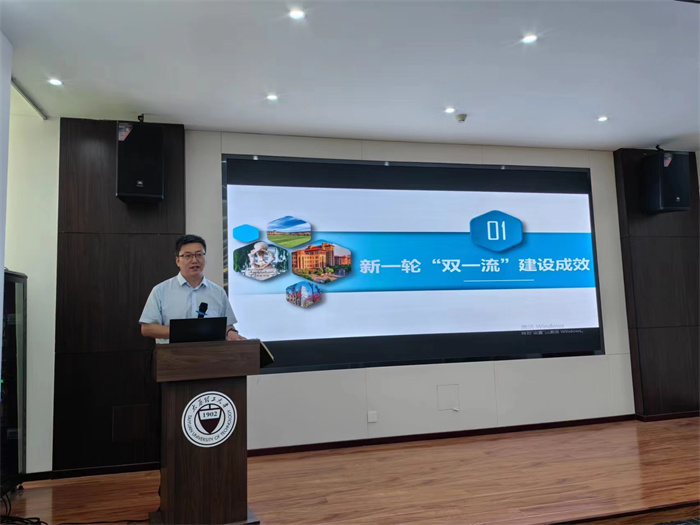 副院长张明江对学校2023-2024学年新学期工作会议会议精神进行了传达。并结合学校重点工作对学院师德师风建设、学风建设、人才队伍建设、科研能力建设等方面提出了意见和建议。