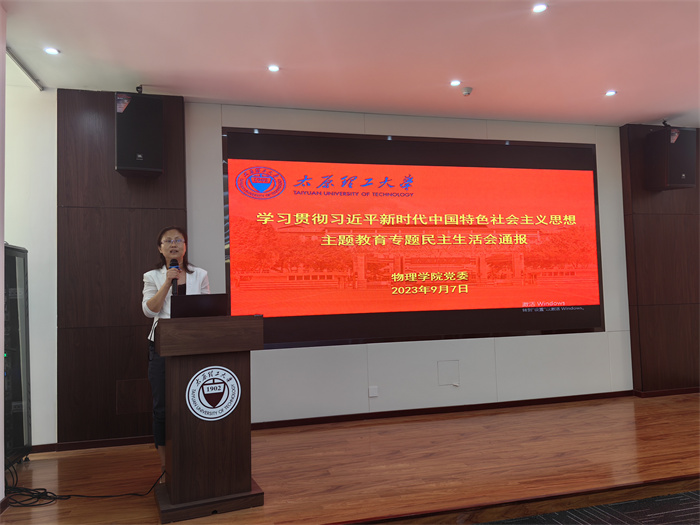 院党委书记赵雪霞从会前准备情况、会议召开情况、批评与自我批评、校领导点评和整改措施等方面进行了通报,传达了校党委常委、副校长肖连团对学院专题民主生活会点评讲话的主要精神。肖连团指出,学院要落实主题教育的成果,持续强化理论学习,做好教育强国中的高等教育篇章;要坚守立德树人使命,主动作为,开展有组织的教育教学活动;要强化科研,对接服务需求,工作上力争追求卓越;要走好主题教育后半段路,加强政治学习和思想引领,做到学无止境和与时俱进。结合校领导要求、班子的整改思路和措施,赵雪霞激励大家要以此次主题教育为契机,做好下一阶段的检视整改工作,真正让主题教育的成果落地落实;要进一步抓好教学质量提升,更加关心关爱学生,要加强团结,在交往和工作中增进了解、互相理解,共同推动物理学院高质量发展。各党支部召开专题组织生活会情况也一并在会上进行了通报。