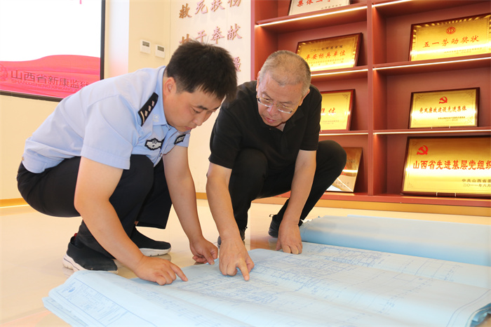在山西省一〇九医院,全体党员干部参观了正在建设的罪犯救治中心,通过实地走访查看了院区设置功能布局。