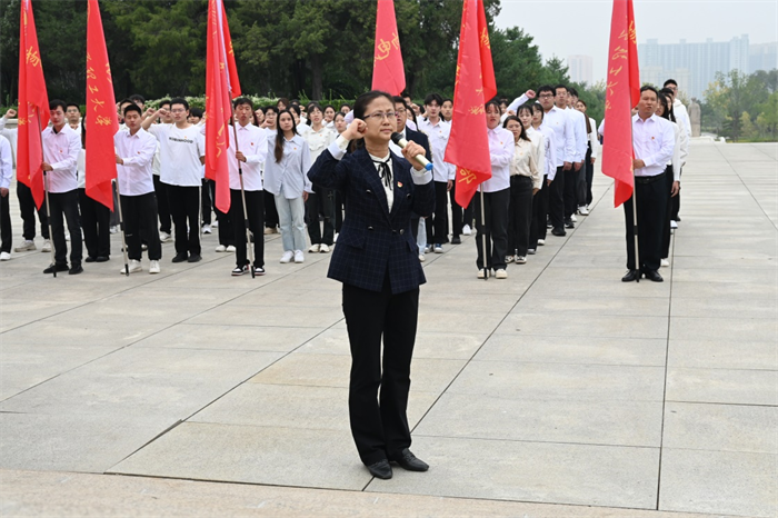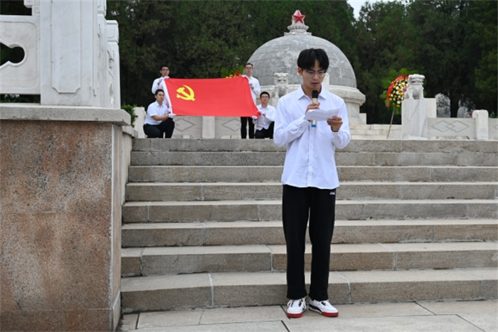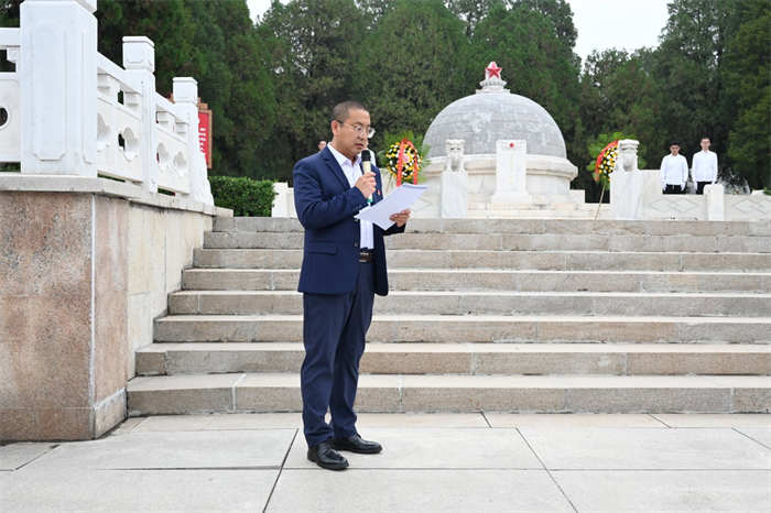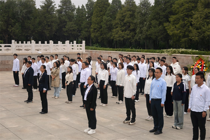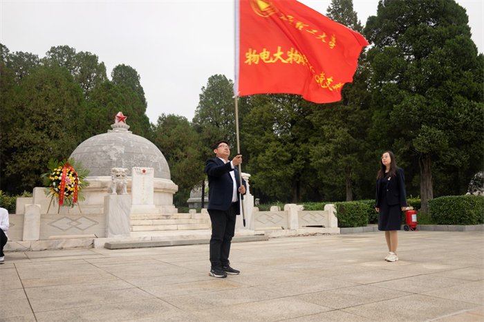 一个有希望的民族不能没有英雄,一个有前途的国家不能没有先锋。在中华人民共和国成立75周年、中华人民共和国第11个烈士纪念日来临之际,为缅怀革命先烈,弘扬革命精神,增强党员责任感和使命感,9月27日,物理与光电工程学院200余名师生党员来到双塔革命烈士陵园举行主题党日活动。院党委书记赵雪霞、副书记李巍、副院长杨玲珍、副院长邓霄,师生党员代表及入党积极分子参加活动。活动由李巍主持。