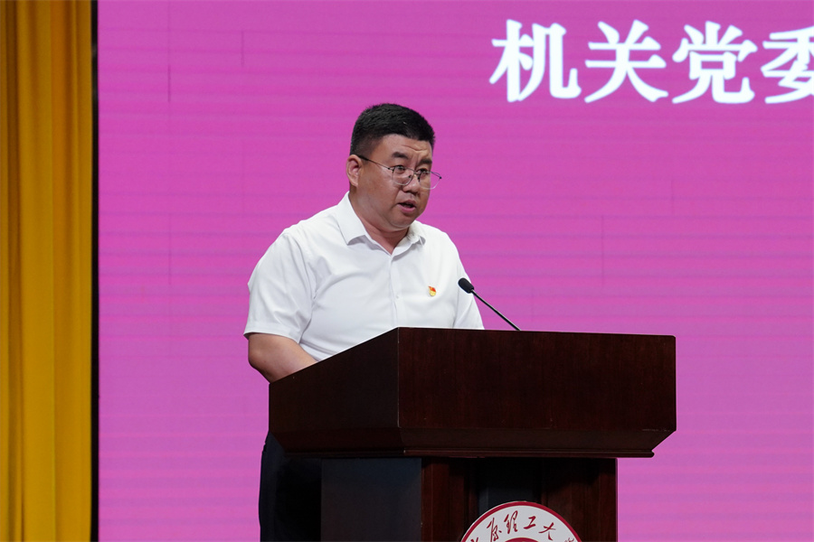 在庆祝中国共产党成立104周年之际,6月30日下午,学校在明向校区学生活动中心一层报告厅召开庆祝中国共产党成立104周年暨机关党委“效能机关”建设表彰大会。校党委副书记、副校长肖连团出席会议,机关全体干部职工参会。校党委常委、统战部部长、机关党委书记李玮主持会议。