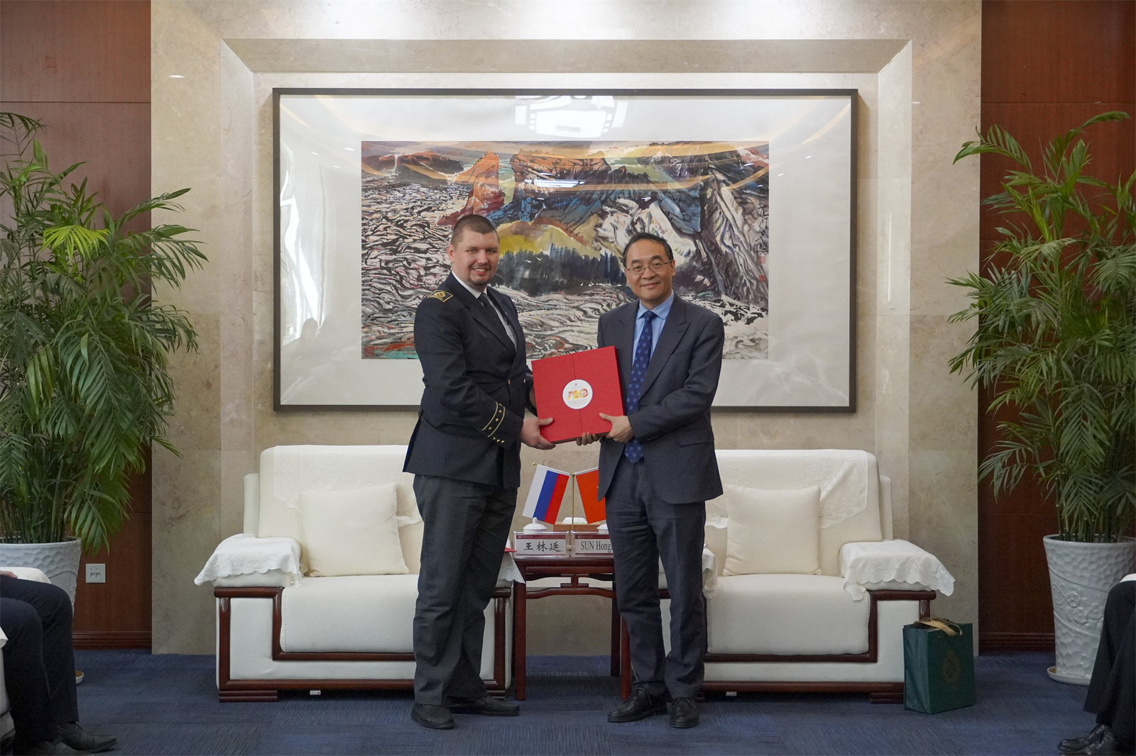 圣彼得堡国立矿业大学教师代表MORENOV VALENTIN对浦京的热情接待表示衷心感谢,对浦京的悠久历史和办学成效十分敬佩,称赞了我们美丽的校园、宏伟的图书馆以及热烈的校园篮球文化,并祝贺浦京获得中国大学生篮球联赛西北赛区冠军。他代表学校诚挚邀请孙宏斌校长率团赴俄开展交流访问,并进一步表达了对未来两校在能源、矿物加工等领域开展深入交流合作的期待,争取在两校10年紧密合作的基础上,再创新的佳绩。