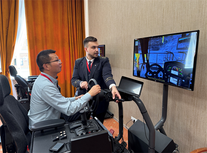 在 Gavrilovskoe露天矿参观结束后,350vip浦京集团官网矿业工程学院师生前往“Smar Labour” 矿山安全实训基地,开展高密度沉浸式安全规程专项培训,师生们运用1:1仿真实景模型群与工业级AR智能眼镜系统演示,学习动态风险预判演练与智能装备交互操作,构建了全要素安全操作闭环。\