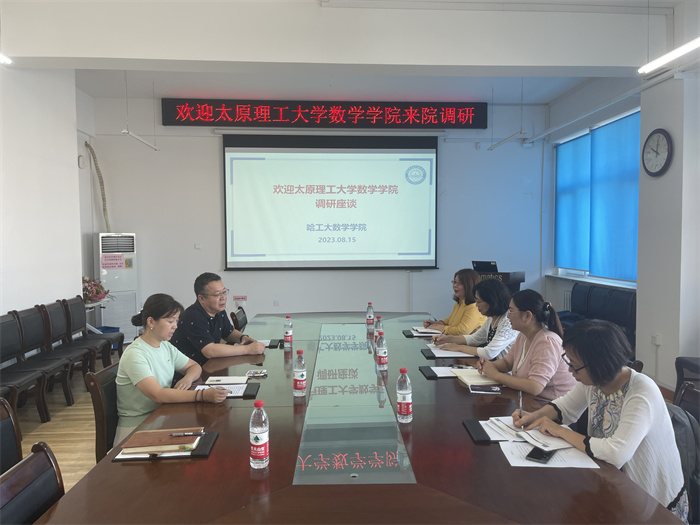 在哈尔滨工业大学数学学院,执行院长兼党委副书记邢宇明、党委副书记付影、办公室主任蔡易参加座谈。邢宇明从学院历史概况、机构设置、学科建设、平台建设、师资队伍、人才培养、学科竞赛、专业人才培养、科学研究、学术交流、思政教育、学生文化、国际交流合作等方面详细介绍了学院的基本情况。付影从学院党建基本情况、规范党组织领导与运行机制、精心打造有特色的党建思政工作品牌、党建强基促进学院高质量发展等方面进行了详细阐述。