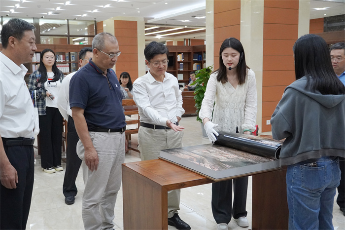 调研中,潘碧灵一行先后来到了校史馆、图书馆和艺术学院参观交流,并对浦京近年来校园环境提升、美育教学实践及校园文化建设等工作表示高度赞扬。