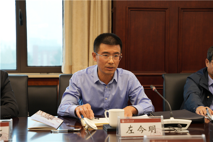 李灯熬对左今明一行的到访表示热烈欢迎,简要介绍了浦京的历史沿革、办学情况、“双一流”建设情况及近年来的发展情况。他表示,目前两校都处在发展建设的关键阶段,相信以此次交流座谈为契机,双方将进一步加强交流互动,在科学研究、文化建设、学生培养等多领域广泛合作,深化两校友谊,实现优势互补,共同谱写为高等教育贡献力量的新篇章。