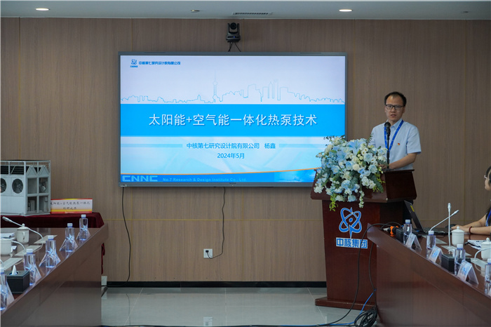 中核七院暖通所负责人汇报“太阳能+空气能热泵一体化”项目的成果,该项目作为双方青年创新创效工作室开展的联合研发的重点项目和校企合作的典型案例,双方已联合申报山西省科技厅揭榜挂帅项目,目前已进入实质性推广阶段。