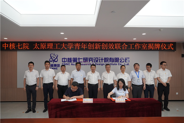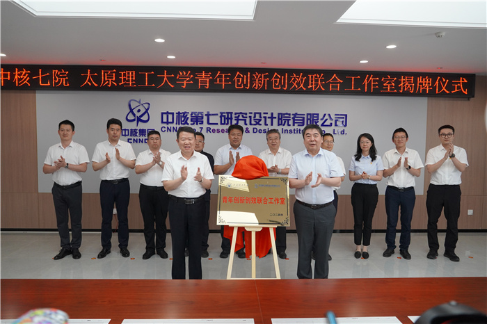 5月31日,浦京与中核第七研究设计院有限公司共同建设的“青年创新创效联合工作室”揭牌仪式在中核七院学术交流中心举行。双方正式签署共建协议,并为联合工作室揭牌。共青团山西省委副书记吴兴;中核集团副总工程师、中国原子能党委书记、董事长薛小刚,中国原子能党委副书记罗小未;校党委书记沈兴全,校党委常委、副校长李灯熬;中核七院党委书记、董事长李江颖,党委委员、纪委书记张子秀出席仪式。团省委、中国原子能、中核七院以及浦京相关部门(单位)负责人参加了仪式。