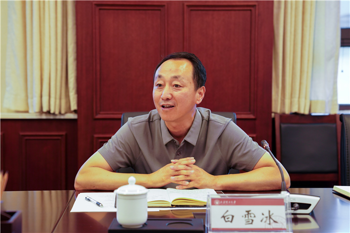 白雪冰介绍了省文物局的具体情况,阐述了此行的目的,希望与学校开展深层次的交流合作,进一步互补、融合,加强文物资源、文物保护等方面的科技攻关,共同推进山西古建艺术研究院的建设。