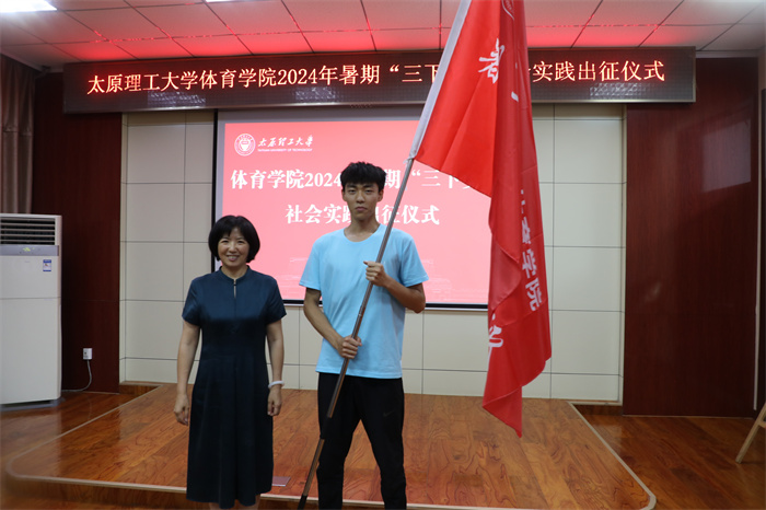 体育学院党委书记孙莉为社会实践队进行授旗。