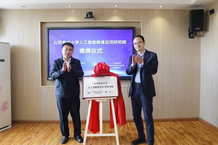 在全体与会人员见证下,何芸和魏明强代表双方签署战略合作协议,揭牌“山西省中小学人工智能教育应用研究院”。根据协议,双方按照“优势互补、共谋发展、互利共赢”的原则,推进人工智能技术在中小学广泛应用,创新信息时代中小学教师培养模式,提升中小学师生数字素养,共同推动中小学人工智能教育普及,服务山西基础教育高质量发展。