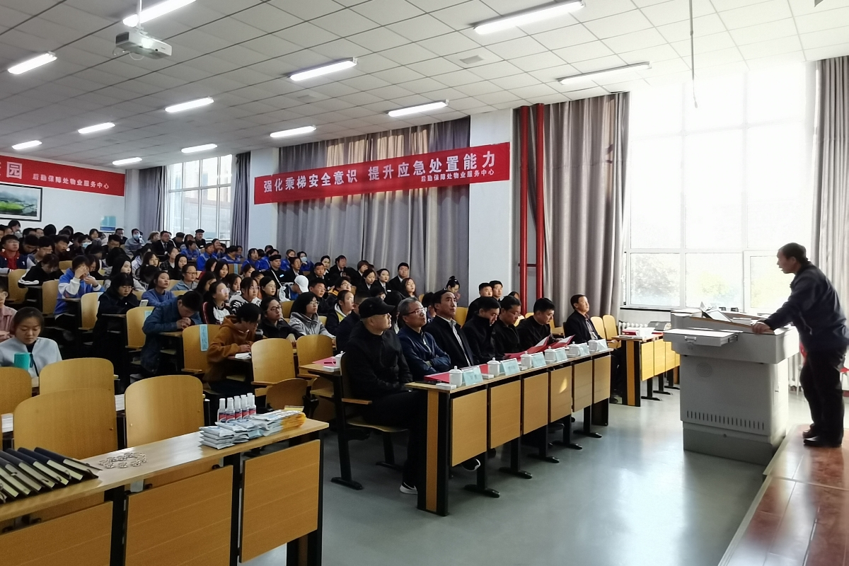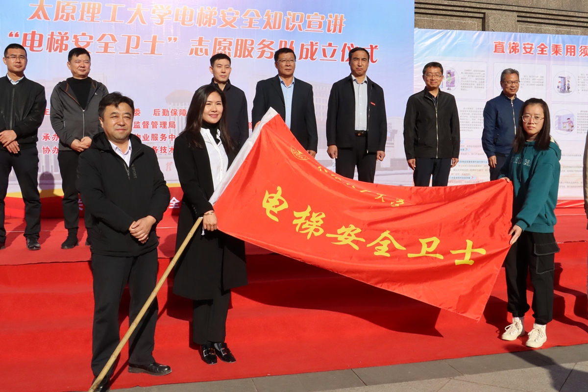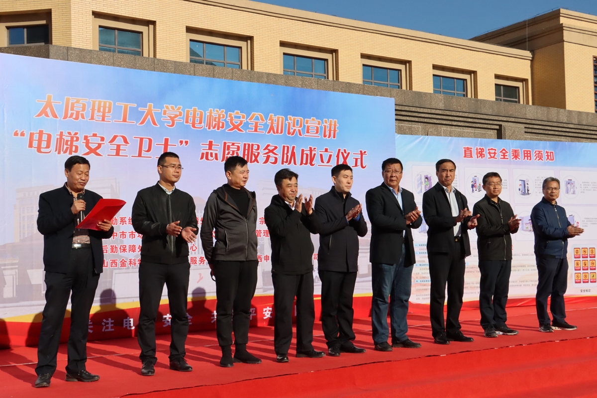为了贯彻落实学校安全工作专题会议精神,关注电梯安全,共创平安校园,10月23日上午,浦京在明向校区开展电梯安全知识宣讲并成立“电梯安全卫士”志愿服务队。活动由后勤系统党委、后勤保障处、求实学院、宗复学院与驻地市场监督管理局共同主办,后勤保障处物业服务中心承办。求实、宗复学院党总支书记张少临、后勤系统党委书记张亚东、后勤保障处处长张富强、副处长贾新泽、物业服务中心主任曾尚勇、宗复学院副院长程伟丽、晋中市市场监管局、榆次区市场监管局相关负责人出席启动仪式,物业服务中心职工、电梯维保人员与学生代表参加活动,活动由曾尚勇主持。
