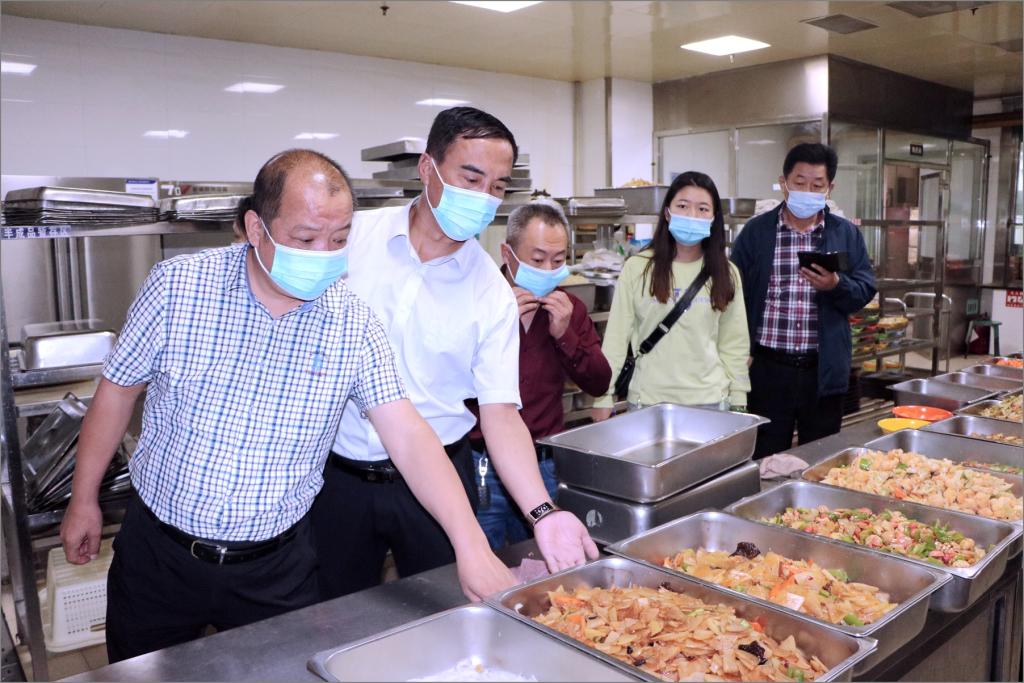 在餐厅、超市,督导组对消毒、通风、食品采购票据、供餐流程、加工卫生等情况进行了全面细致的检查,要求各部门规范食堂餐供应,避免就餐者扎堆就餐,及时采取分流措施,切实维护好师生安全健康。督导组还对消毒水配比、消杀时间提出了专业指导建议。
