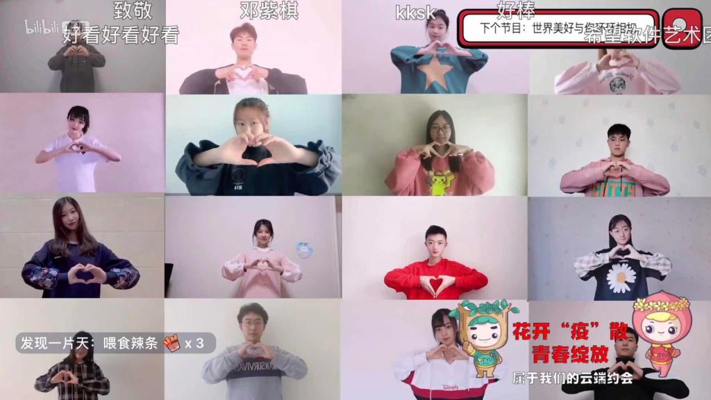 5月4日,校团委庆祝五四青年节“花开疫散绽放青春”云端晚会圆满落幕,青年师生相约云端,在线观看晚会,互动交流,共叙情谊。