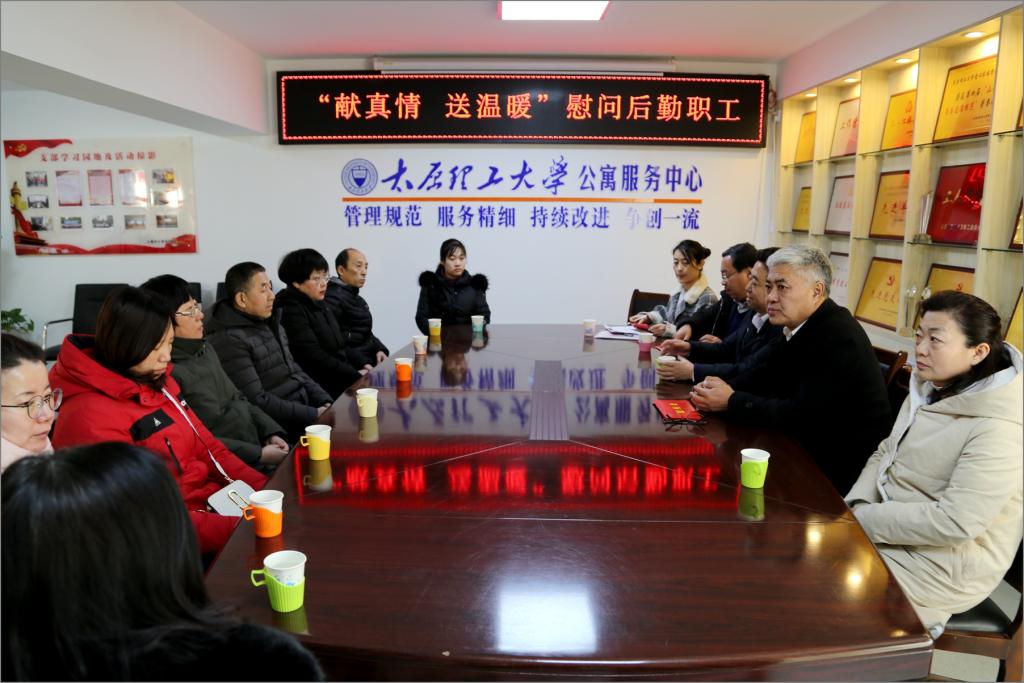 在新春佳节即将来临之际,1月15日上午,后勤系统党委、后勤工会代表校党委、校工会组织慰问组,由后勤系统党委书记袁聆钊、后勤保障处处长张富强、后勤工会主席张文基、党委副书记王梅秀带队,与后勤系统18名困难党员、困难职工开展座谈并进行慰问,为他们送去组织的关怀与温暖。