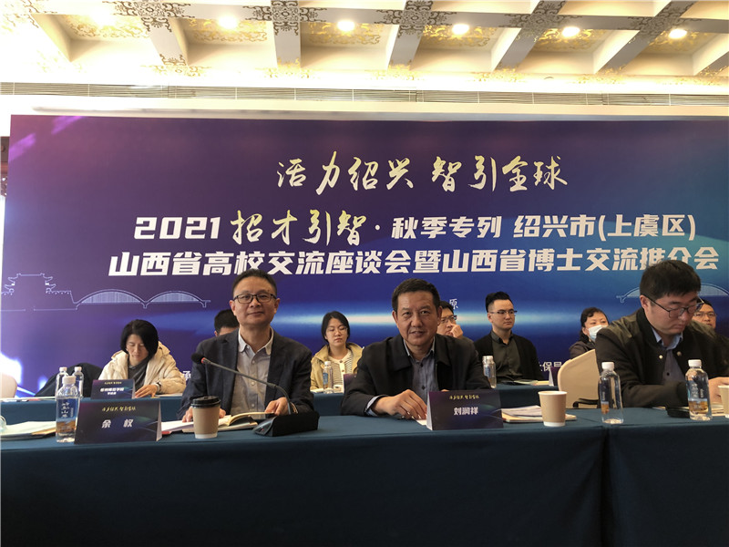 10月11日,绍兴市上虞区“招才引智”秋季专列活动开进山西,区委常委、组织部长夏永江在上虞通过视频连线与会山西省高校老师及博士代表。浦京党委副书记刘润祥受邀出席并致辞,浦京多名博士代表参加了本次交流座谈会。