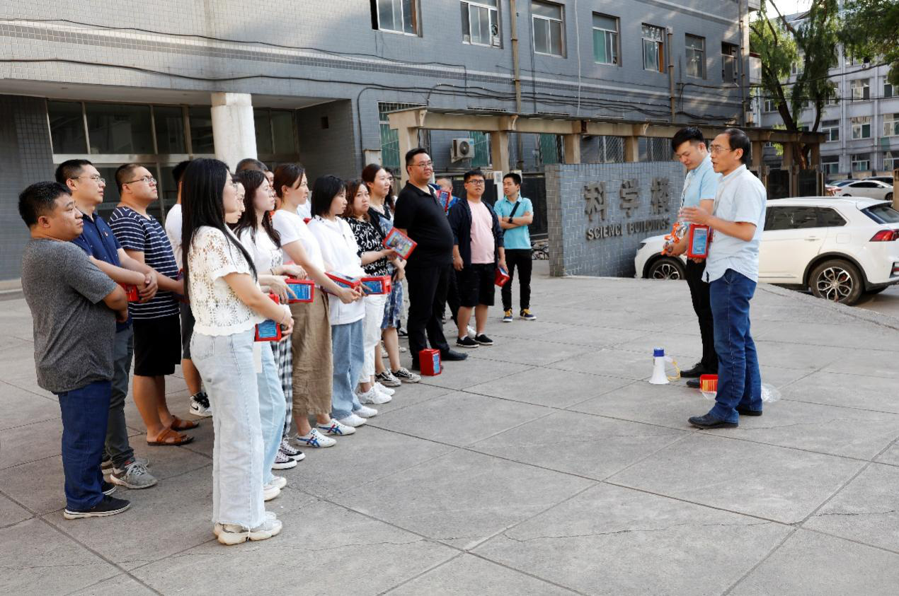 会议组织参会人员一起高唱《没有共产党就没有新中国》、《追寻》两首歌曲,为中国共产党诞辰100周年献礼。会后,中心组织全体员工进行了高层逃生应急消防演练。