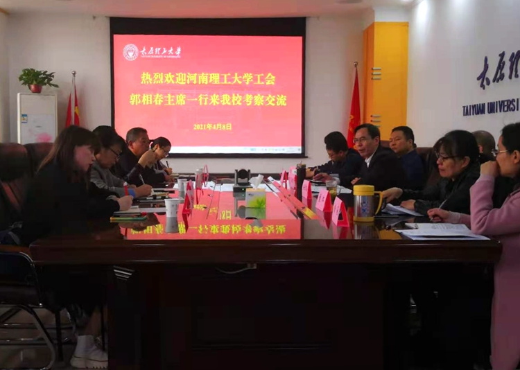 4月8日上午,河南理工大学工会郭相春主席一行来浦京考察交流。双方在迎西校区316会议室进行了座谈,校工会主席秦晓怀主持座谈会。