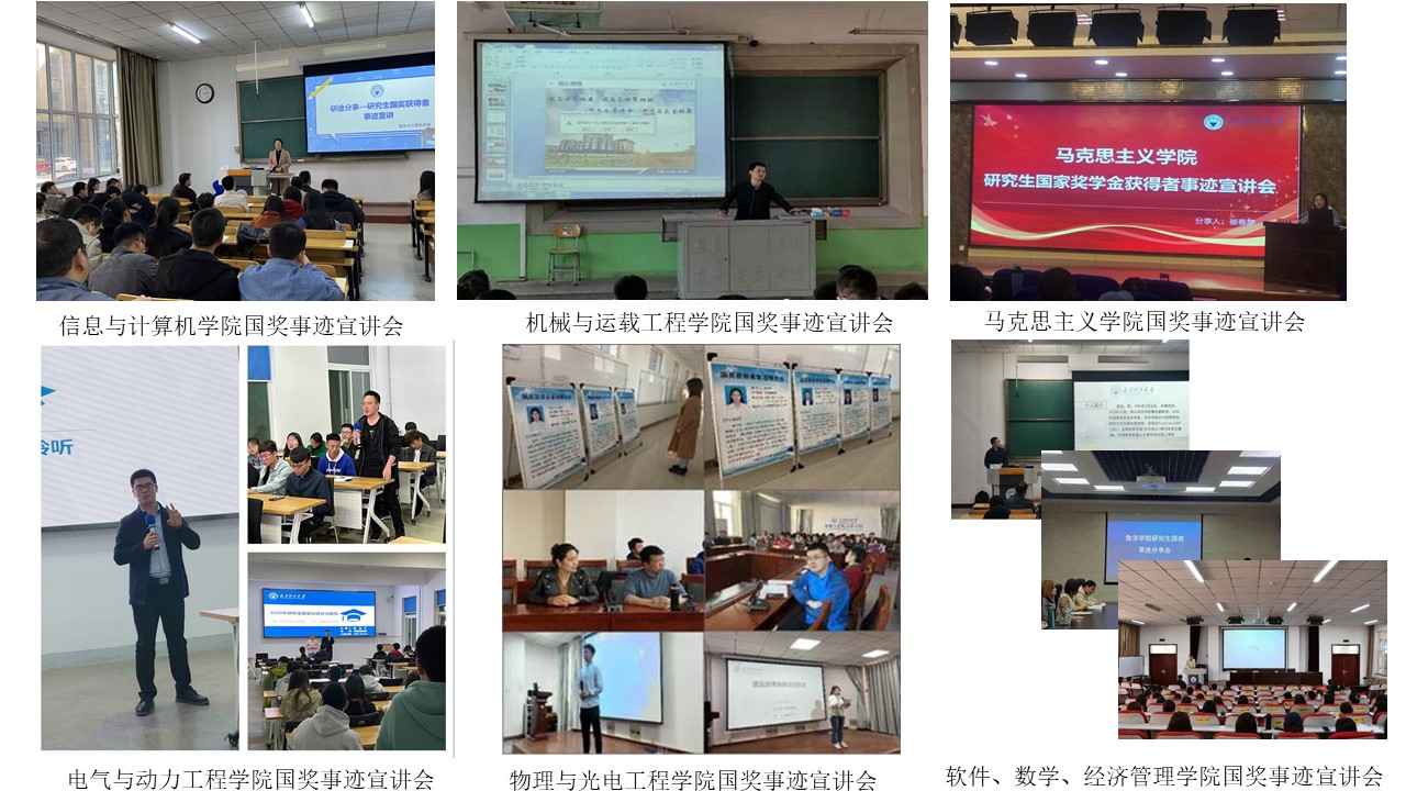 活动进行期间,各学院积极开展线下事迹宣讲会,百余名研究生国奖获得者结合自身实际,从研学经历、成长感悟、成果介绍等多方面为全校学子进行了经验分享,并与参会师生畅谈交流,引导广大研究生脚踏实地,严谨勤奋,将家国情怀融入科学研究,立志解决核心技术难题,不愧于新时代赋予青年学子的使命与担当,对全校研究生优良学风建设和创新能力培养具有重要意义。