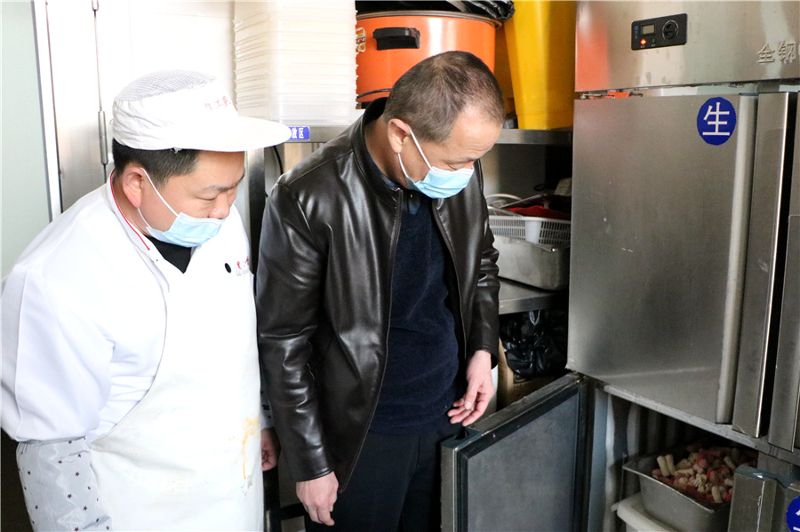 检查组一行深入迎西、虎峪、明向校区各个餐厅,实地查看就餐区、操作间,库房、粗加工间、售饭区以及洗消间等重点区域,着重对从业人员健康证、食品采购相关台账资料、食用油与肉制品卫生安全、食品保质期情况、加工操作流程、食品添加剂管理、食品原材料出入库管理等环节进行了检查。检查过程中,检查组一行对餐厅疫情防控常态化管理措施、库房食品原材料储存管理、食品加工烹饪流程进行了指导,并对检查中发现的问题提出了整改要求。