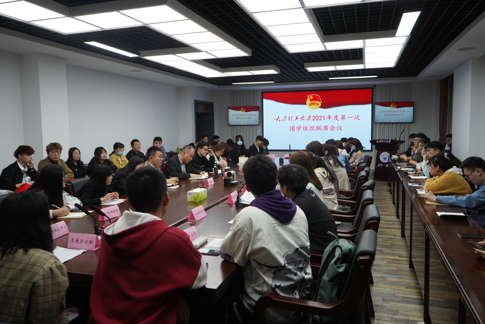 3月16日晚,由校团委组织召开的团学组织联席会议在明向校区学生活动中心三层举行。校团委有关部室中心、学生会、研究生会等校级学生组织骨干60余人参加本次会议。校团委副书记贾支正主持会议。