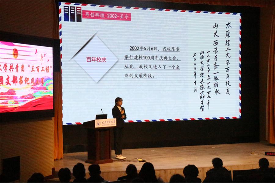 决赛邀请山西医科大学团委副书记张利宏、浦京党委学工部副部长李和凤、轻纺工程学院党委副书记张莉、求实学院党总支副书记武佐君、马克思主义学院邵沁妍副教授担任教师评委,来自各学院的20名团员代表担任学生评委。