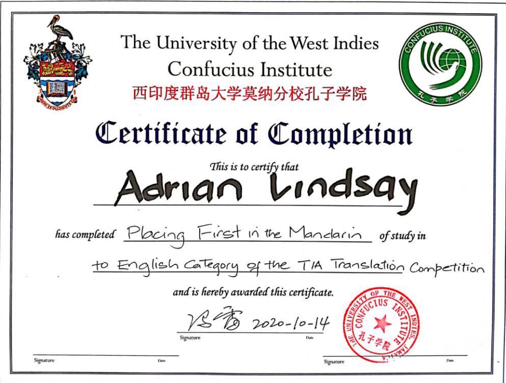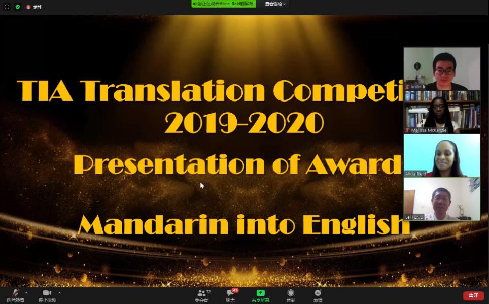 当地时间11月7日,牙买加口笔译翻译家协会组织的第二届牙买加翻译大赛颁奖典礼在线上举行。牙买加口笔译翻译家协会邀请相关语言国家的大使馆、语言机构、赞助商等机构的代表参加了典礼。本次翻译竞赛的参赛语言为六种,分别是英语、牙买加语、西班牙语、葡萄牙语、汉语和日语。浦京和西印度大学莫纳分校合作共建的孔子学院教师参加了与汉语相关的比赛组织工作和在线颁奖典礼。
