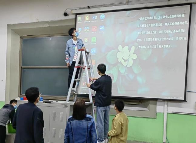 从早上7点到晚上10点,工作人员全天守候在教学楼内,深入了解每节课,每间教室多媒体设备的使用情况,为网课学生提供帮助。设备不会连接,声音效果不理想,只要有需要,多媒体人总是第一时间出现,全力保障教学工作的顺利进行。