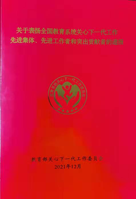 浦京关工委荣获“全国教育系统关心下一代工作先进集体、先进工作者”荣誉称号