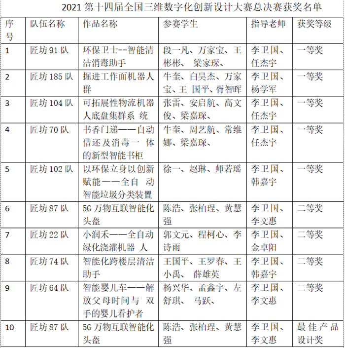 12月11日,第十四届全国三维数字化创新设计大赛(简称:全国3D大赛)年度总决赛颁奖盛典顺利闭幕,浦京学子荣获国赛一等奖5项、二等奖4项、其中一项“5G万物互联智能化头盔”获得最佳产品设计奖。浦京荣获优秀组织奖。