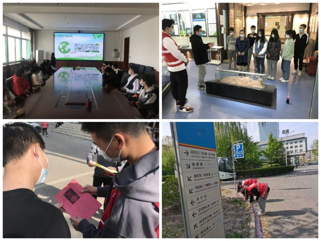 “坚持绿色低碳可持续,为地球母亲减负”主题团日活动中,同学们观看了相关视频了解了有关世界地球日的内容;“保护生态,呵护地球,从我、从小事做起”宣传活动中,同学们在虎峪校区致明楼、图书馆和梅花教室门口分发宣传单,号召广大同学争做保护地球的先锋者;地球科学馆参观活动中,同学们感受到大自然的鬼斧神工,感受到46亿年来地球的沧桑变幻,感受到矿物之美、岩石之异、化石之妙、资源之奇;“清洁校园,美化地球”清扫活动中,同学们在校园内进行清洁活动,用自己的行动,贯彻落实人人为环境、环境为人人。