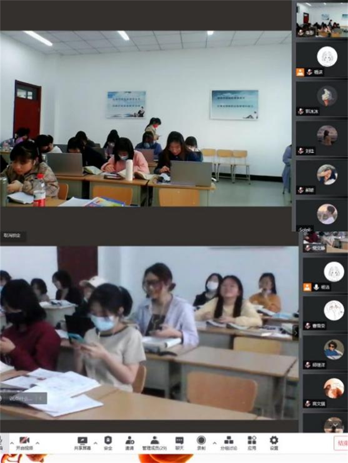 为确保教学进度和教学质量不打折扣,外语系多次召开线上教学工作会议,传达学校线上教学会议、文件精神,系统安排全系线上教学工作,沟通解决线上直播授课遇到的教学问题。系里大部分教师在2020年疫情期间已有线上教学的经验,接到线上直播授课任务后,积极调试平台、克服困难,第二天就已全部进入线上授课状态。