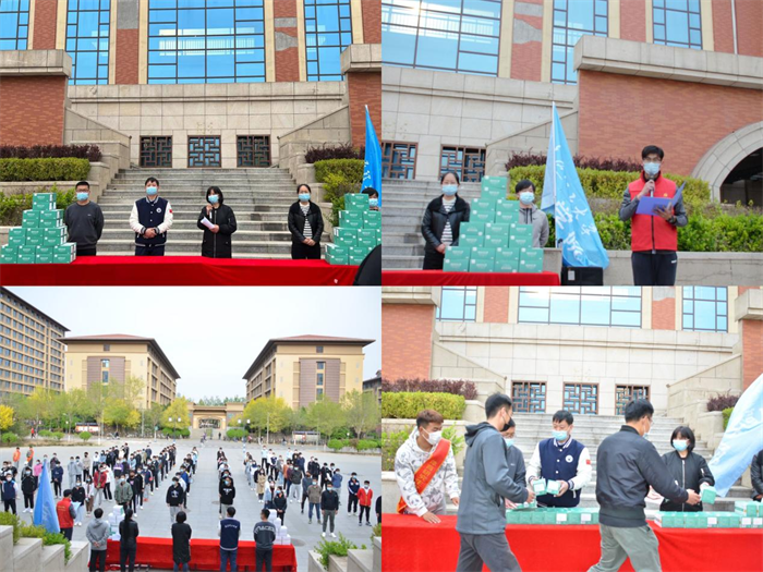 全体参会成员进行慷慨激昂的宣誓活动,拿出了勇当先锋、抗疫必胜的决心。宣誓结束后,学院向学生送去了温暖和关怀,为每位同学发放了口罩。