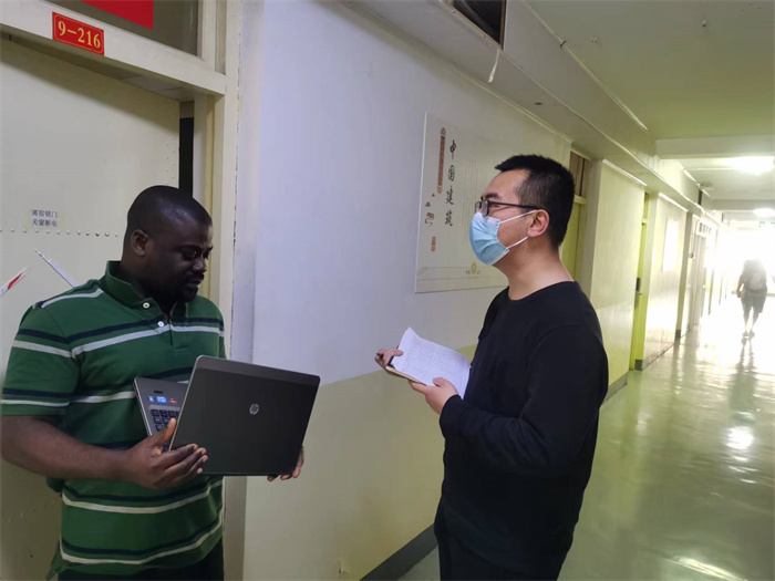 排查准而不懈,检测快而不乱。学校发布全员检测通知后,国际教育交流学院驻守校内的辅导员(班主任)立即深入宿舍逐人逐户摸排,同时与居家办公的其余工作人员协同合作,迅速摸清底数;积极与第三方检测机构对接,优化工作流程,及时协调解决国际学生信息采集方面的困难,确保全体国际学生核酸、抗原检测实现“全覆盖”。