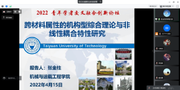 为庆祝浦京喜迎120周年校庆,进一步推动学院青年学者交叉融合创新,通过交叉融合激发灵感,拓宽思路,加强科研方向交叉融合创新培育项目建设,机械与运载工程学院特推出2022年“青年学者交叉融合创新论坛”暨校庆120周年系列学术活动,论坛第一期于4月15日下午在线视频召开。学院院青年教师、特邀专家以及其他感兴趣的老师共计120余人参会。院党委书记赵惠民,院长王志华教授,副院长熊晓燕、赵敬伟出席会议。会议由赵敬伟主持。