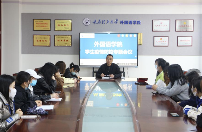 3月24日下午,外国语学院组织召开学生工作疫情防控专题会议,传达学校疫情防控工作要求,布置安排学院防控工作相关事宜。学院全体辅导员老师、各班级主要学生干部参加会议。会议由学院党委副书记郑为国主持。