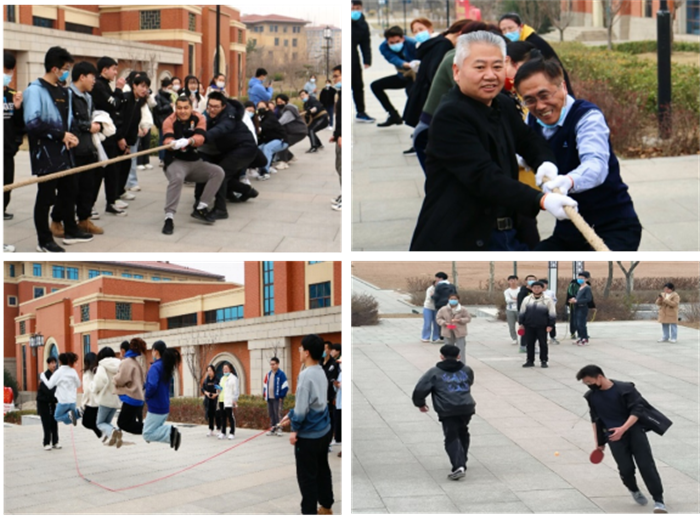 在本次趣味运动会中,200余名来自13个班级的学生积极参与到各项比赛中,进行了团体拔河、团体跳绳、乒乓球接力跑共计3个项目的激烈角逐。活动现场掌声、笑声、喝彩声此起彼伏,不同年级的同学与学院教职工相互鼓劲、加油。